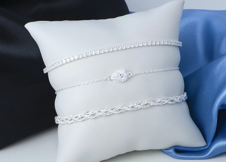 Pulseira de Prata Riviera Corações 19cm - comprar online