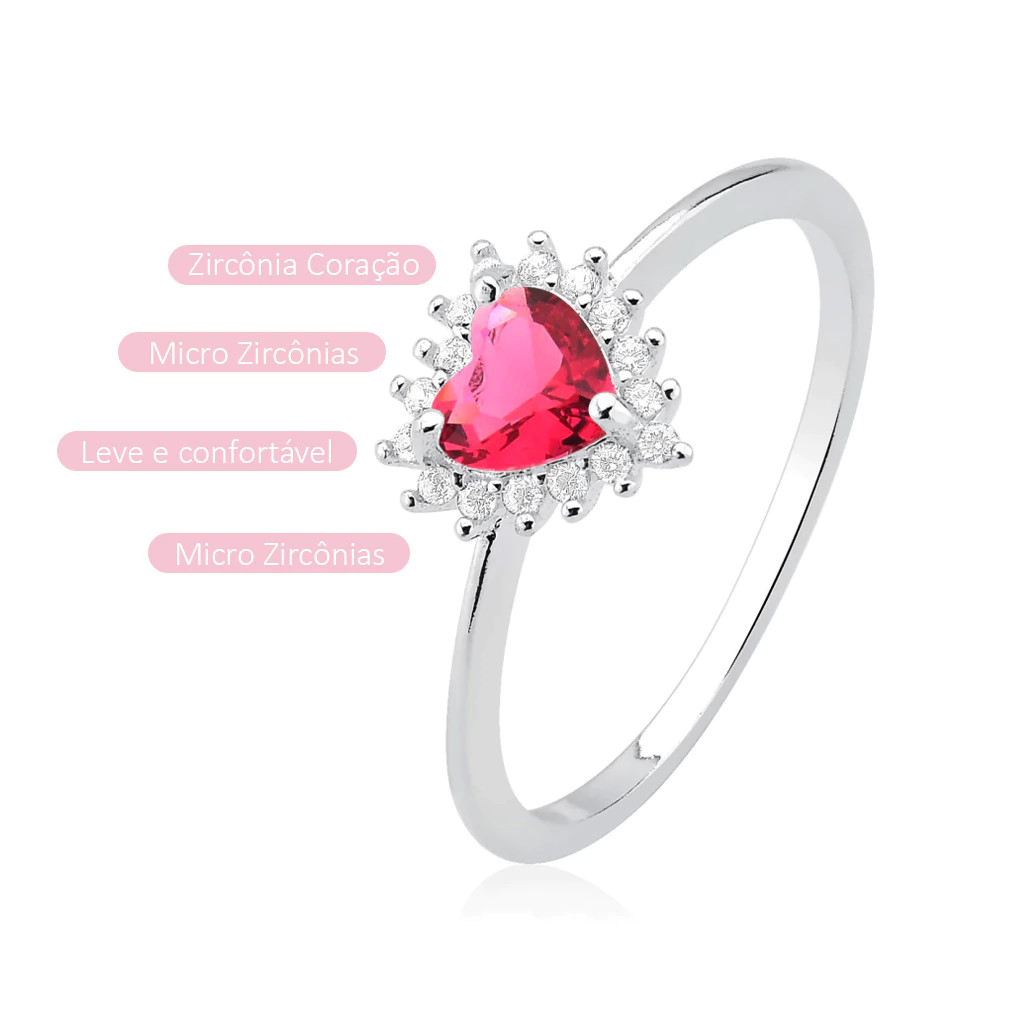 • Pedra: Zircônia Coração Pink e Micro Zircônias;
