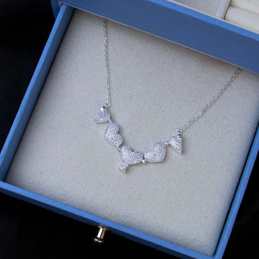 Um colar cheio de charme e significado: o colar de prata 925 Trevo de Corações Cravejados combina romantismo e sorte em uma única joia. O pingente é formado por quatro corações que se unem em um delicado trevo cravejado com zircônias brancas, resultando em uma joia brilhante e sofisticada.