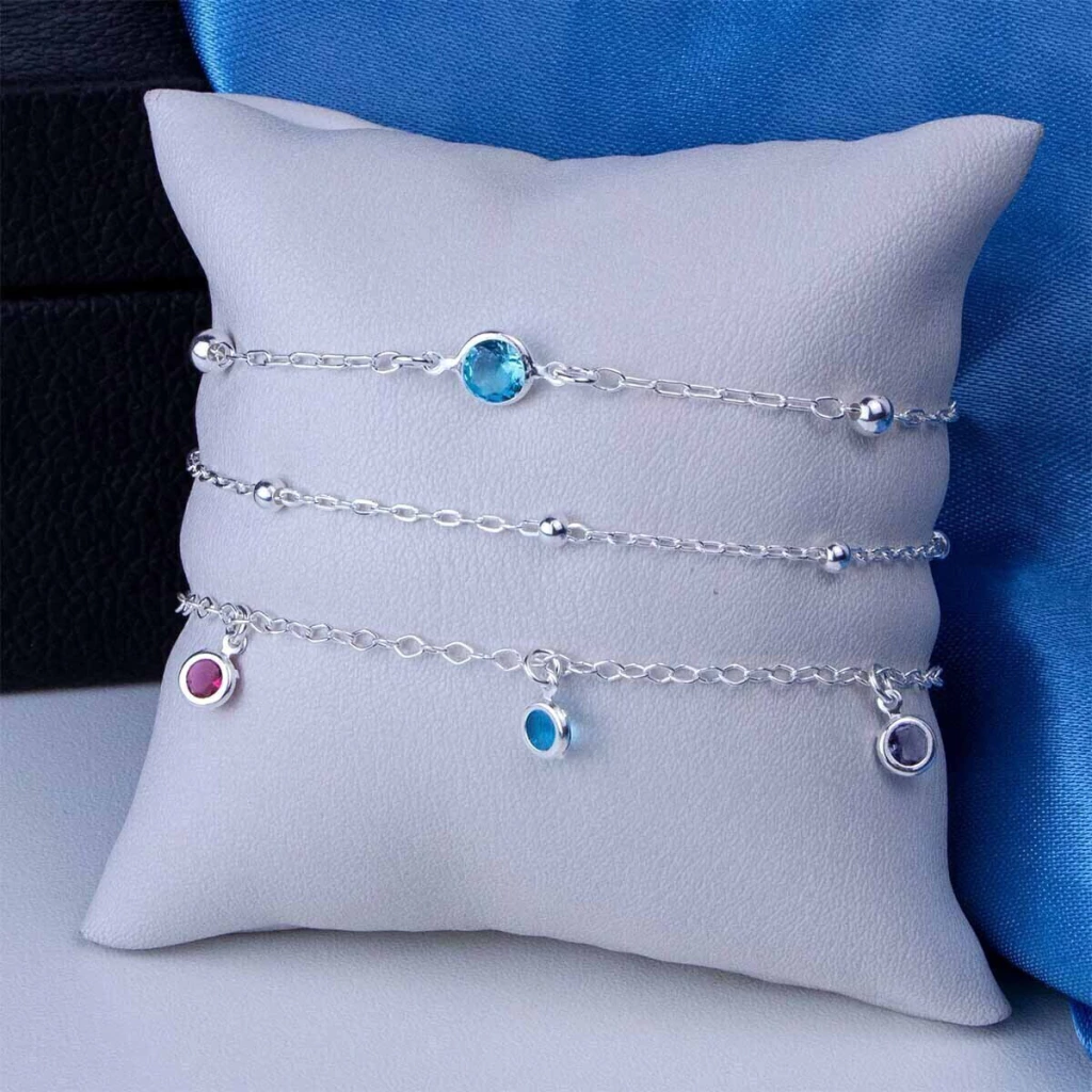 Pulseira de Prata 925 Cinco Zircônias Coloridas 20cm