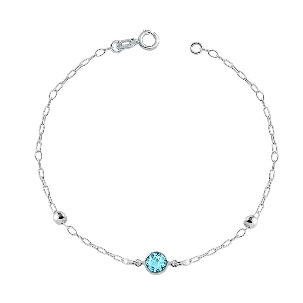 Pulseira de Prata 925 Ponto de Luz Azul com Bolinhas 18cm