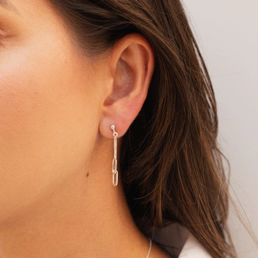 O Brinco de Prata 925 Bolinha e Dois Fios Oval é sinônimo de leveza e movimento. Suas linhas finas e ovais pendurados criam um balanço delicado que destaca o rosto com sofisticação.