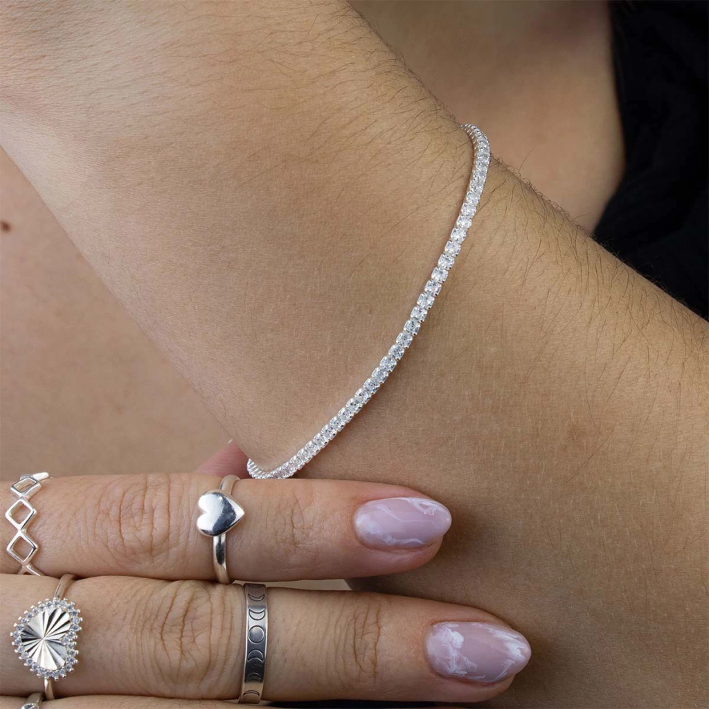 Elegância em cada detalhe. A Pulseira Prata 925 Riviera é uma daquelas joias que transformam qualquer look. Com fileira contínua de zircônias e 2mm de espessura, ela traz brilho intenso na medida certa, sendo perfeita para quem ama um toque sofisticado no dia a dia ou em ocasiões especiais.