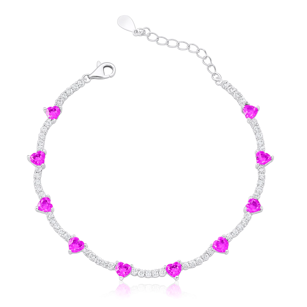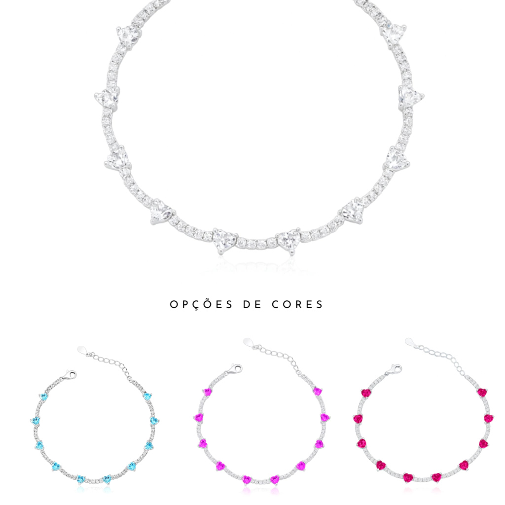 Elegante e romântica, a pulseira de prata 925 estilo riviera traz uma sequência de corações de 5mm que envolvem o pulso com brilho e sofisticação. O design apaixonante combina o clássico da riviera com a delicadeza do coração, criando uma joia especial para qualquer ocasião.